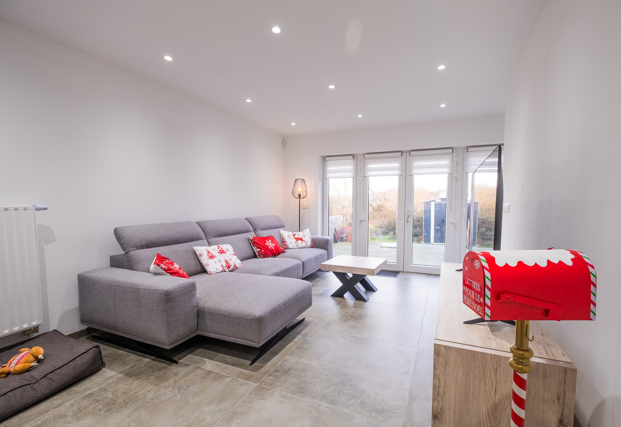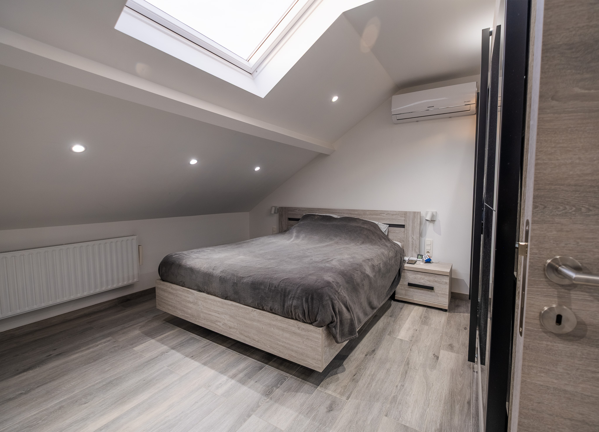 I VISIT vous présente une maison bel-étage 3 façades comme neuve ! Il n’y a plus qu’à poser vos valises dans ce bien tout confort. Située à proximité des commodités (commerces, grands axes, écoles, ravel, …). Prestations all-in : excellente isolation, VMC, vidéophone, double vitrage, volets électriques, nouvelle toiture, électricité aux normes, adoucisseur, chauffage central à condensation, air conditionné, … La maison est composée : place de parking, garage (porte sectionnelle) avec espace buanderie et espace technique, WC indépendant. 1er étage : salon donnant sur la terrasse et le jardin, salle à manger, cuisine ouverte full équipée (IXINA). 1er étage : hall de nuit, WC indépendant, salle de bain (douche et bain), 2 chambres (15 m² et 8 m²). Grenier de stockage. Terrasse, jardin (orienté SUD-EST), abri de jardin, entièrement clôturé. RC : 457€. Offre à partir de 230.000€.