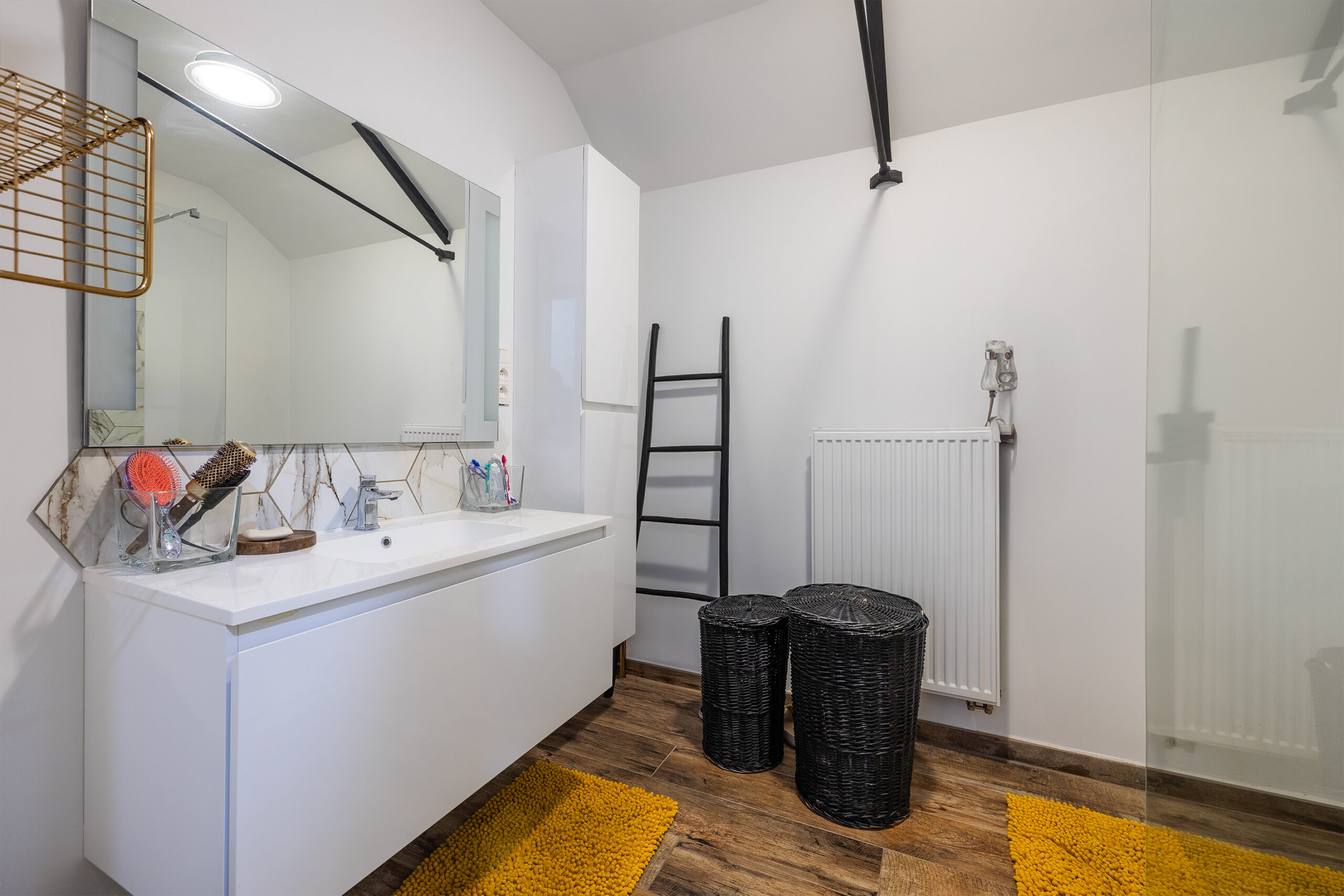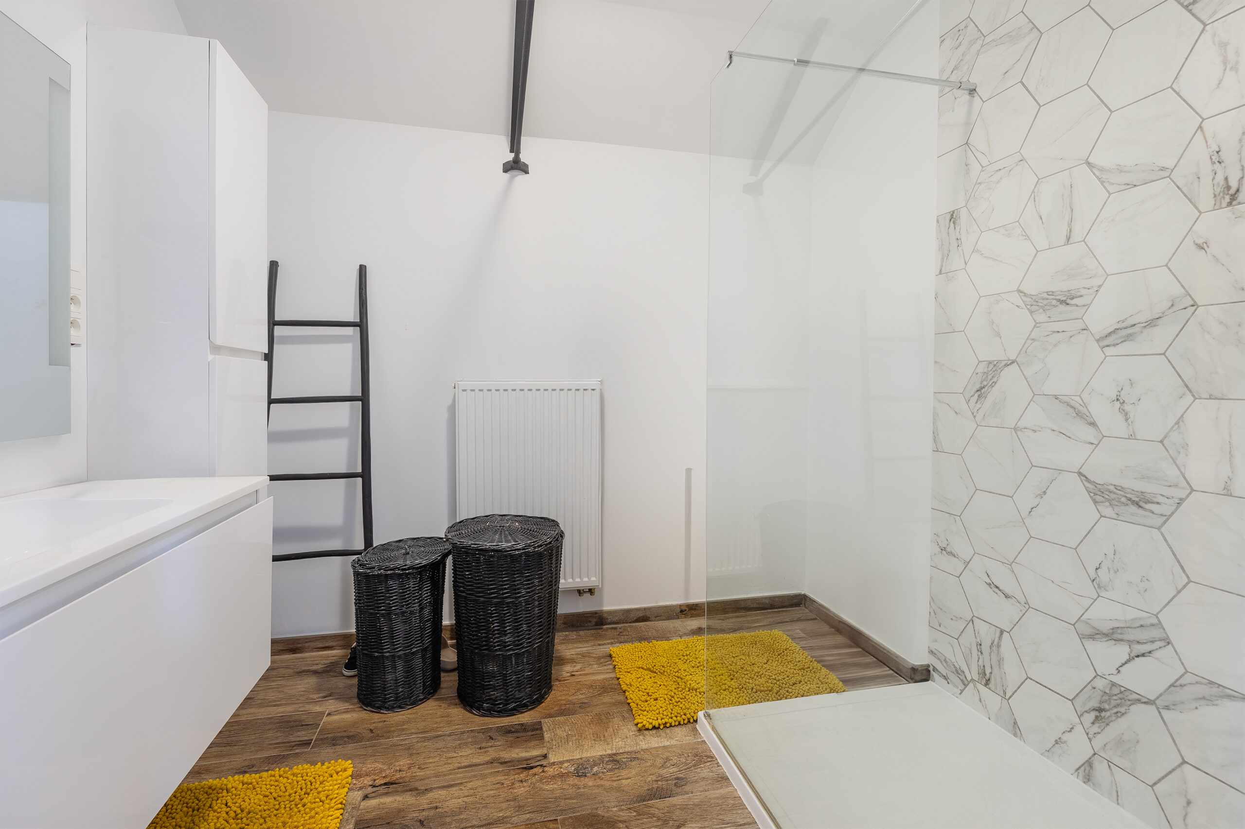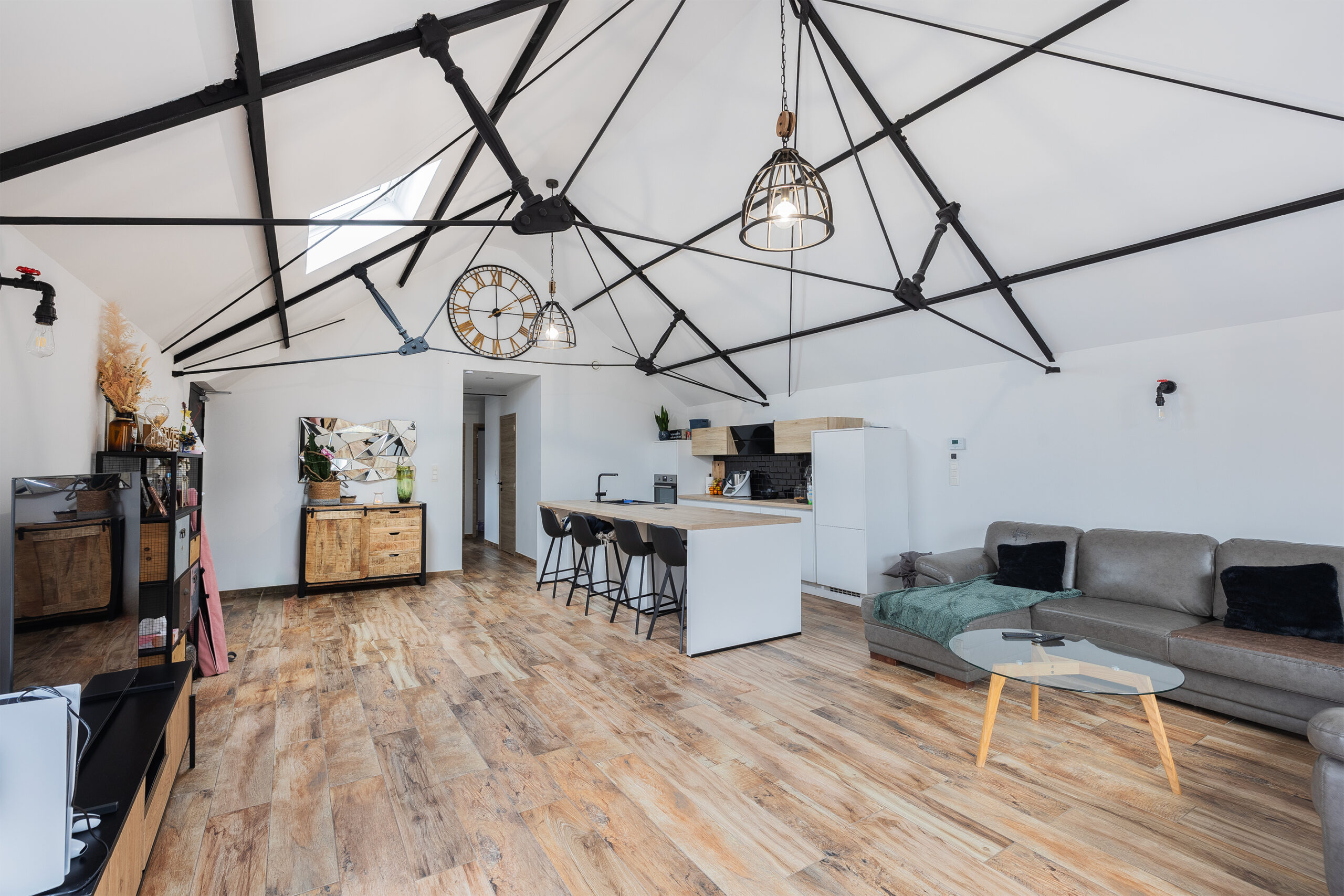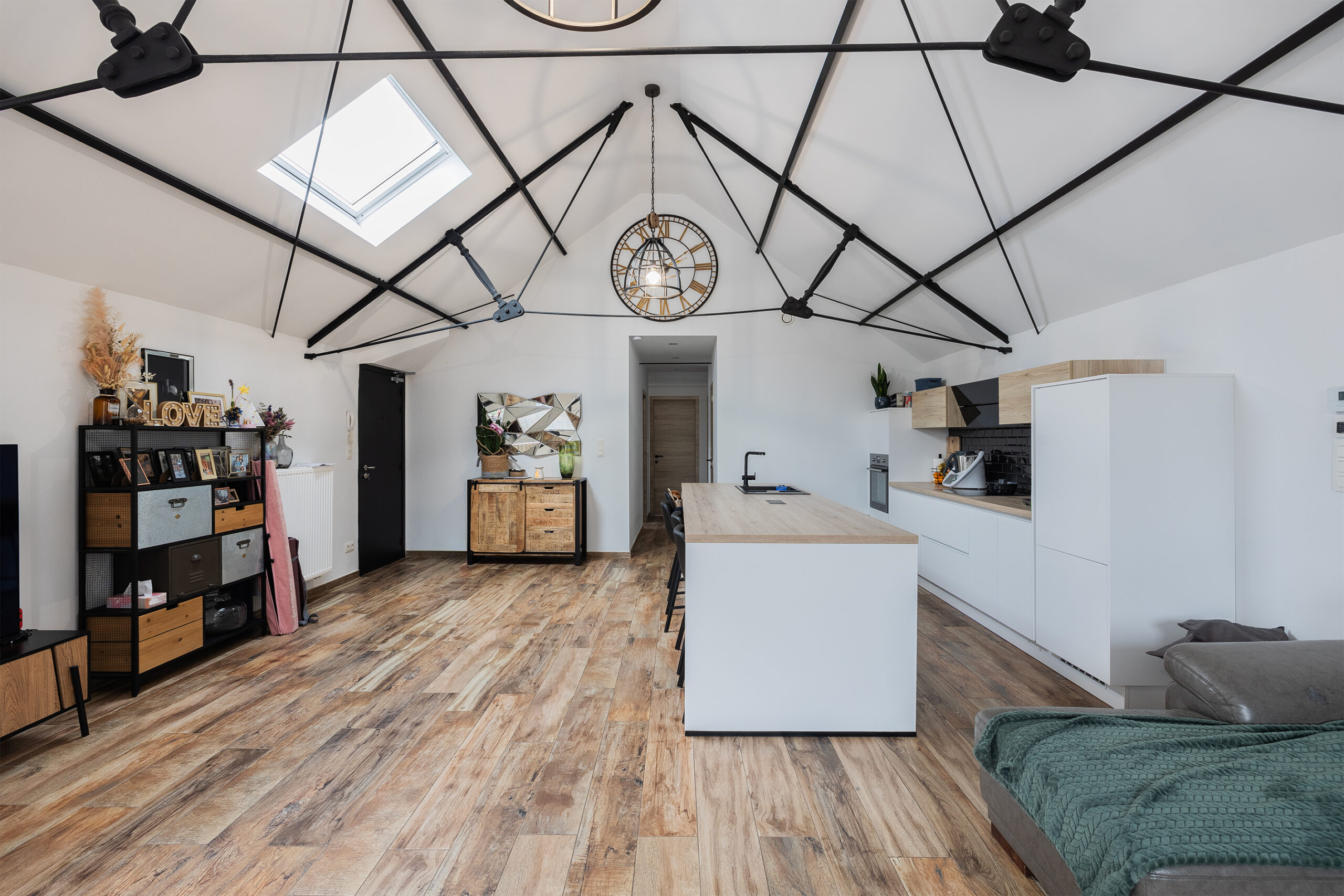 I VISIT vous propose un magnifique appartement de type industriel entièrement rénové aux prestations intéressantes. Dans un bâtiment réaménagé en deux logements, l’appartement est situé au 1er étage. Devant l’immeuble, vous disposez d’une place de parking privative. L’appartement est composé : séjour hyper lumineux de 50 m² et une hauteur sous plafond de 4m, cuisine ouverte full équipée. Accès à une terrasse sans vis à vis de +/- 50 m². Hall de nuit desservant les pièces de manière indépendante, 2 chambres (14 m² et 10 m²), dressing/buanderie, WC indépendant, salle de douche (lavabo, douche italienne). L’appartement est entièrement rénové, excellent PEB, châssis double vitrage PVC, électricité conforme, air conditionné dans le séjour, raccordement à l’égout, nouvelle toiture, chauffage central gaz à condensation, … Les stores et luminaires sont compris dans la vente.